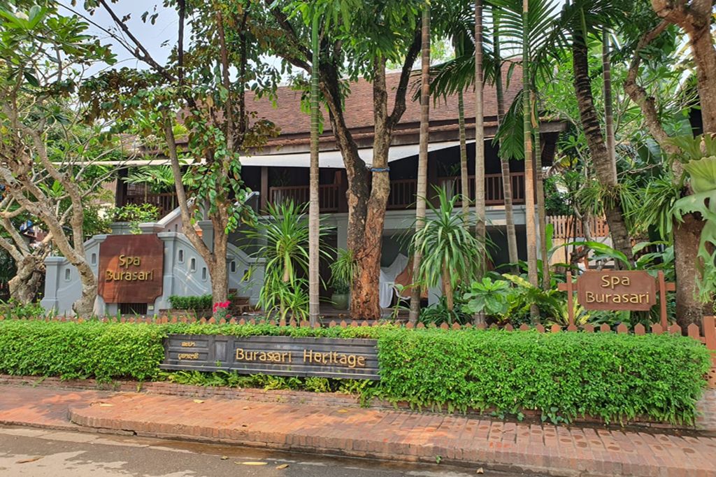 -Has 5 buildings of Luang prabang style house consisting of 21rooms with separate buildings for reception , restaurant, kitchens including spa rooms plus landscape and gardens.